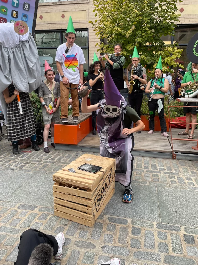 Discursurile au fost pe cât de teatrale, pe atât de directe. „Ne-am dat puterea de a ne amuza până la moarte”, a spus un protestatar. Noah Edelman a subliniat că tehnologia nu e doar o distracție inofensivă, ci o formă de izolare: „O relație sănătoasă cu tehnologia e baza pentru comunități mai bune și chiar pentru o politică mai sănătoasă”.