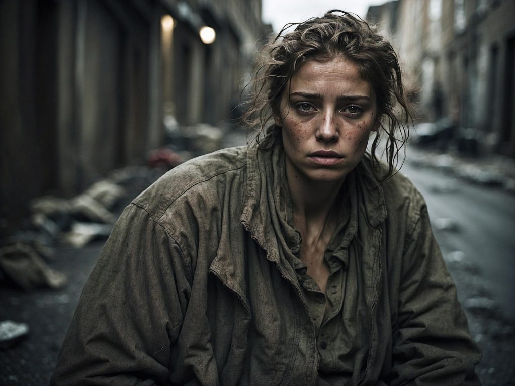 Rezultatul? O sărăcie fotogenică: piele crăpată, haine rupte, priviri spre cer — totul în stil HDR.