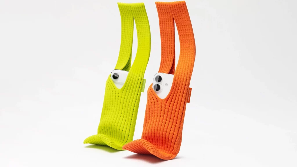 Asta este iPhone Pocket — o husă tricotată 3D, semnată Issey Miyake, care se poate purta ca o geantă crossbody, agăța de un rucsac sau lega de o geantă de mână.