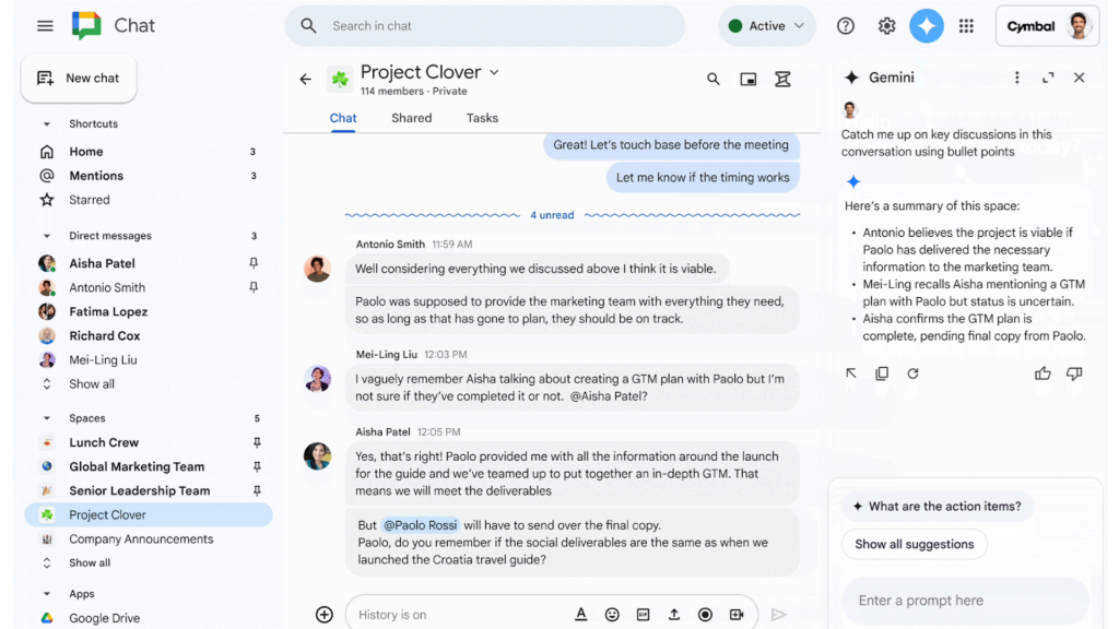 - E un nou pas în strategia Google de a aduce Gemini în toate colțurile Workspace, de la Docs și Gmail până la Chat.