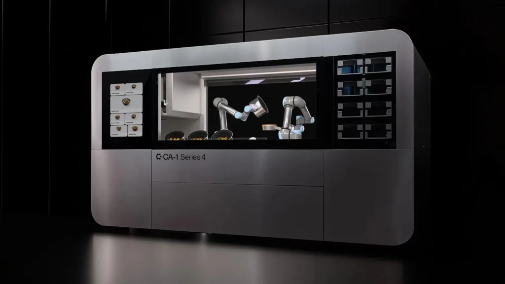 CA-1 Series 4 nu seamănă deloc cu bucătăriile de campanie clasice. Este un sistem complet autonom, controlat de AI, care folosește două brațe robotice pentru a gestiona întregul proces de gătire.