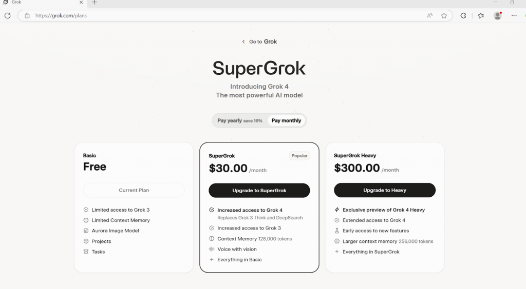 În comparație, planurile premium ale xAI, precum SuperGrok Heavy (menționat în presa internațională, inclusiv de Yahoo Finance), oferă capabilități mult mai avansate, dar la costuri semnificativ mai mari.