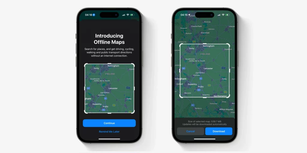 - o versiune complet offline a Apple Maps, care va funcționa fără Wi-Fi sau rețea mobilă;