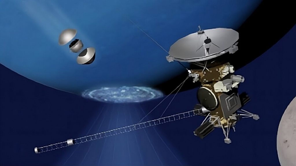 - Sonda ar studia atmosfera planetei, inelele și luna Triton, unde ar putea exista un ocean subteran