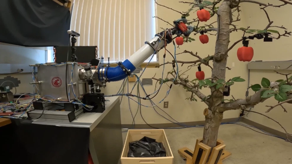 - Cercetători de la Washington State University (WSU) au creat un braț robotic gonflabil pentru culesul merelor